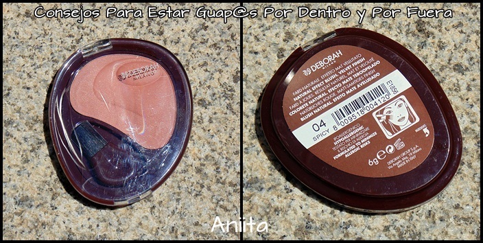 - Colorete Natural Efecto Mate Terciopelado De Deborah Milano: Es en el tono 04 SPICY, contiene 6g y cuesta 8.48€.