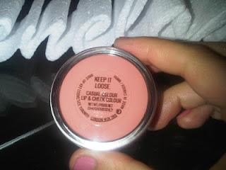 De una de las nuevas colecciones (por tanto, de edición limitada) "Casual Colour" precisamente un producto que la firma ha denominado así: casual colour, lo que viene siendo un "múltiple", más o menos, es una "cremita" con color para aplicar en mejillas (a modo de colorete) y labios. Mac lo define como "un color versatil y liviano, todo en uno, para mejillas y labios. Es "discreto" (esto os lo reafirmo yo) y aseguran, desde la firma, que contiene entre sus ingredientes vitamina E para mantener hidratados mejillas y labios. Me gusta, me gusta bastante, además el precio es el mismo que el de un colorete (unos 20 €) y sirve también para labios, así que es muy recomendable. El tono que elegí se llama "keep it loose" ("evita perderlo", o algo así en castellano) y es este: