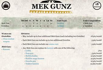 Ya están a la venta los pre-pedidos de la semana pasada y colocados los nuevos pre-pedidos en web de GW.Mañana espero poder hacer una entrada al respecto,pero antes de dar por finalizado el día de hoy,un par de curiosidades sobre que lo que viene en el primer codex de W40K 7ª.La primera lo increíblemente barata que es,para lo que hace,la nueva(Bueno,reciclada mucha de ella de otras ediciones o de Epic40K) artillería de kampaña de los orkoz.Aun bien repleto de extras no llegas a los 40 puntos por pieza(39 puntos al máximo opciones y con la opción de arma mas cara) y puedes meter hasta 5 en una sola casilla de apoyo pesado,lo cual son menos de 200 puntos(195 puntos).Lo que no es ni el 10% del total del coste de un ejército de W40K tipico...El coste de un solo Devastador/Aniquilador de los marines espaciales/del Caos con cañón láser te da para varias piezas!