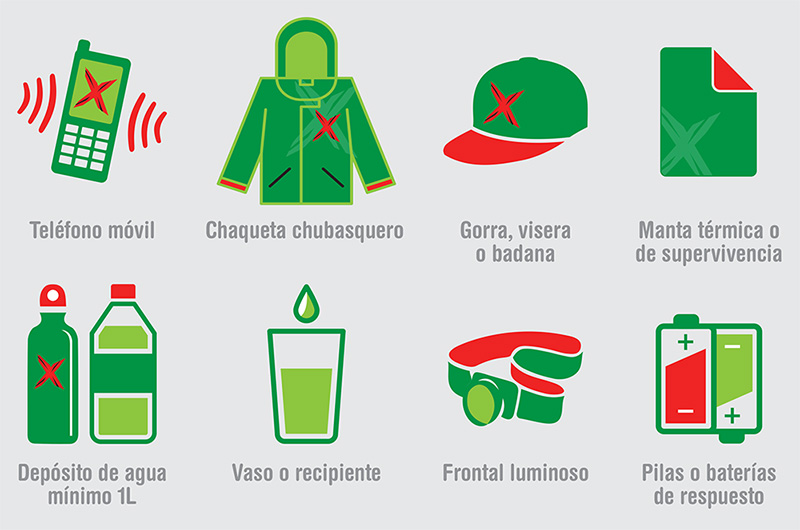 El material obligatorio será el típico en este tipo de pruebas, revisado por los árbitros cuando la organización lo establezca oportuno siendo necesario llevar encima en todo momento: