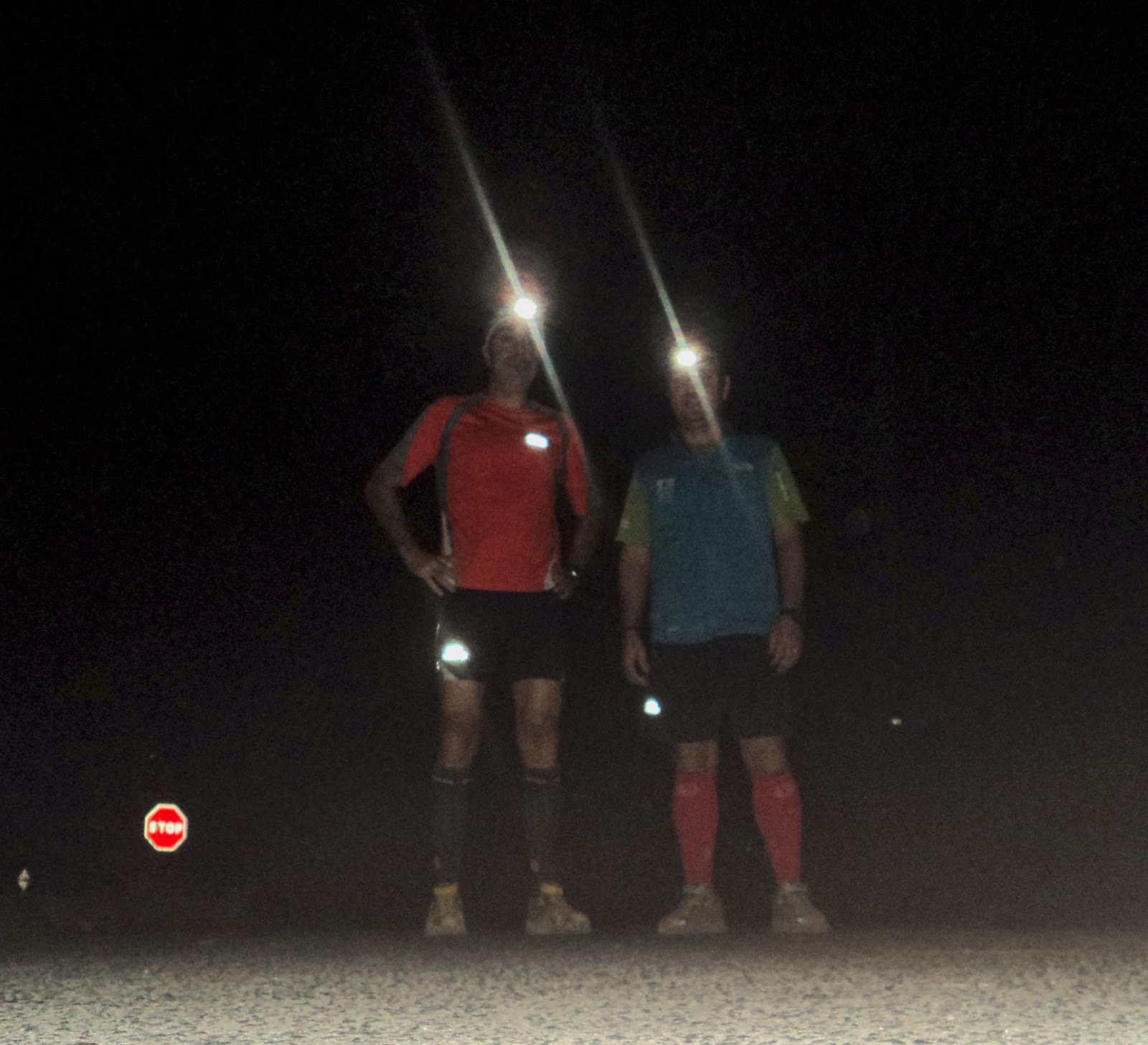 5:45 Horas de la madrugada... Probando los frontales antes de dirigirnos al pie de la montaña...