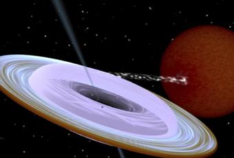 Investigadores de la Universidad de Turku en Finlandia encontraron que el eje de rotación de un[{» attribute=»»>black hole in a binary system is tilted more than 40 degrees relative to the axis of stellar orbit. The finding challenges current theoretical models of black hole formation.