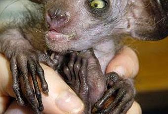 El Aye-Aye (Daubentonia madagascarensis) pertenece a los primates estrepsirrino endémico de Madagascar, emparentado con los lémures. Lémur en latín significa espíritu nocturno y veréis que cantidad de problemas causa este significado. Su población decrece alarmantemente porque los habitantes de Madagascar lo consideran una criatura endemoniada por ser tan feo. El hecho de que le consideren un animal poseído por espíritus malignos le coloca en el punto de mira de los nativos, que le temen y odian a partes iguales. Este animal tiene el dedo corazón muy alargado y las supersticiones de los nativos de Madagascar dicen que si a alguien le apunta con el dedo corazón, este morirá en pocos días. Muchos conservacionistas están luchando por la conservación de este animal, pero los cazadores les llevan ventaja. Como siempre, donde hay una extinción o un problema ambiental, está detrás el ser humano. Ya sea por creencias, por costumbres, por ocio o por necesidad, el hombre arrasa con todo lo que tiene delante.