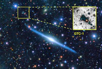 Un equipo científico internacional, en el que participa el Instituto de Astrofísica de Canarias (IAC), ha detectado distorsiones en el brillo del disco de una galaxia que podrían deberse al efecto gravitatorio de una desconocida galaxia vecina. Bautizada con el nombre de GTC-1, la galaxia satélite se ha descubierto utilizando imágenes ultraprofundas obtenidas con la cámara OSIRIS del Gran Telescopio Canarias, ubicado en el Observatorio del Roque de los Muchachos en La Palma. El hallazgo proporciona una posible explicación sobre la forma en que la luz disminuye bruscamente en los bordes de los discos de las galaxias, un misterio que ha intrigado a la comunidad científica durante décadas. El resultado se publica en la revista especializada