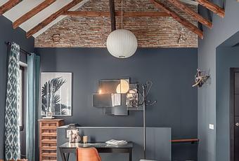 La verdad es que ni ese color azul, ni las vigas del techo, el espacio diáfano o el mobiliario o los accesorios son los típicos en las viviendas de nuestro entorno y se ve claramente como una mano nórdica ha tenido mucho que decir en el proyecto.