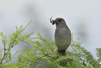 En Argentina hay especies de aves que tienen el nombre de arañeros, así que cuando nos dicen arañero a los aficionados a las aves o a los ornitólogos pensamos en especies de la familia Parulidae como el arañero silbón, el coronado chico, el cara negra, el ribereño o el corona rojiza por nombrar algunos, quizás a los más conocidos. Pero estando el año pasado en un camping cerca de la localidad de La Para, en la provincia de Córdoba, a orillas de la laguna Mar Chiquita, encontramos a un ave frecuente en los pastizales, una especie que casi siempre colabora con el fotógrafo: el verdón (Embernagra platensis), especie de la familia Thraupidae.Ver un verdón no es muy dificultoso, al menos en ciertas regiones, lo que no es tan frecuente es verlos con arañas en el pico. Suelen comer semillas e insectos, pero me llamó la atención ver a este verdón posando despreocupado y con cierta curiosidad ante mi presencia, pude ir de a poco aproximándome y ver como tenía a esa araña de buen tamaño en su pico, con las patas sobresaliendo, algo no apto para aracnofóbicos.