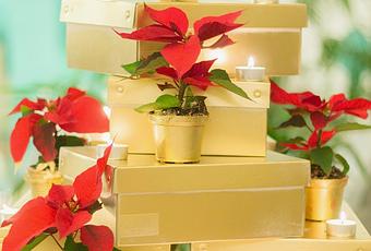 Además, puedes utilizar las cajas para esconder los regalos de navidad, y dependiendo del espacio que tengas, puedes hacerlo con cajas de madera. Es una decoración muy funcional con la que puedes decorar un patio, separar dos ambientes o hacerla en 2 dimensiones para apoyarla en una pared. Deja volar la imaginación y realiza tu árbol de Poinsettias que mejor se adapte a tu decoración navideña.