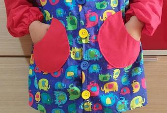 También quería hacerle un baby especial y diferente a Álvaro.Esta vez no he utilizado los famosos cuadros vichy y he elegido esta tela de elefantes tan colorida. Como el fondo es azul, la he combinado con rojo.