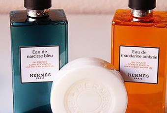 Por su parte la pastilla de jabón Un Jardin Sur Le Toit se inspira en un jardín secreto de París. Un jardín suspendido en la casa Hermès, en el número 24 del faubourg Saint-Honoré. Un manzano, un peral y un magnolio en el aire parisino, junto con las hierbas silvestres, dan lugar a un perfume luminoso.