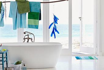 6.- Si quieres conseguir un Baño Fresco con sensación de brisa de mar, esta es tu mejor opción azules y verdes conseguiran una imagen evocadora al azul verdoso del mar.