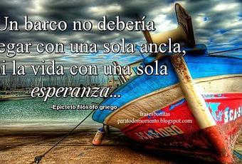 Un barco no debería navegar con una sola ancla, ni la vida con una sola esperanza. Filósofos-Epicteto filósofo griego-Frases de Esperanza,