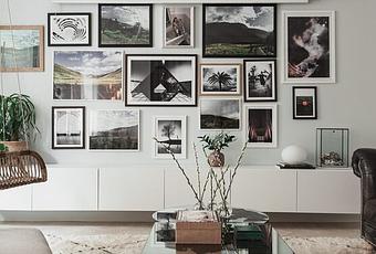 Lo primero que te saluda al entrar en este apartamento es una maravillosa galería en la sala de estar y un chester de piel que luce sobre un escenario de blancos y tonalidades suaves de verdes. Está lleno fotografías con escenas de la naturaleza y, a pesar de la cantidad de imágenes, se ve armonioso debido al esquema de color. Es una de las características de este apartamento. Las tonalidades neutras junto con el verde de las plantas, todas ellas envuelven a la cocina en un hermoso tono punto de encuentro dentro de la vivienda. . Inspirate!!!