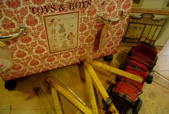 Una imagen tilda,unas etiquetas de juguetes antiguos,unos tiradores y unas ruedas hicieron el resto