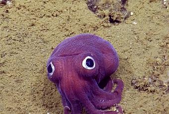 No, no es un Pokemon raro o un juguete de plástico. He aquí el Rossia pacifica o calamar rechoncho, un cómico pariente del que fue recientemente descubierto por la E / V Nautilus frente a la costa de California, a una profundidad de 900 metros (2.950 pies).
