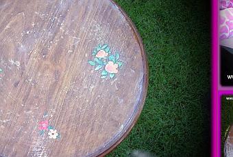Con patina verde de decorfin y un pedazo de esponja le fui dando por las patas y el borde de la mesita, con la cantidad que me parecia adecuada.. eso es al gusto!!