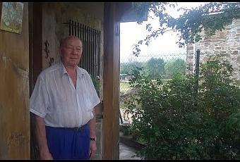 Julián Pérez, "El inglés", a la puerta de su casa en Villavieja. Foto M. Rico
