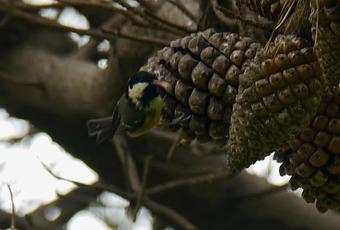 Una vez terminada la etapa reproductiva los carboneros garrapinos se tornan erráticos y se mueven por toda la campiña. Aparece entonces en sitios en los que no es habitual, aunque sigue prefiriendo los árboles como pinos o alisos. Rebusca entre el follaje en busca de invertebrados, pero no le hace ascos a las semillas, como este ejemplar que localicé hoy en el pequeño pinar de Moniello y al que sorprendí extrayendo algún que otro piñón.