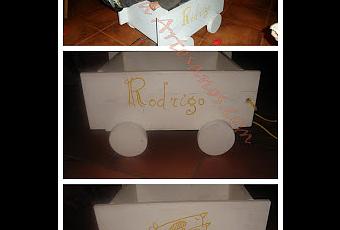 Habia que hacer un regalo para Rodrigo. Se nos ocurrió algo práctico pero a la vez divertido. Ya habiamos realizado una pieza como esta (un carrito para meter juguetes, pero que sirve tambien para paseo), pero le dimos un toque mas personal y divertido.