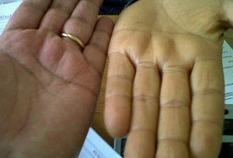 Consulta paciente de 45 años por intensa pigmentación amarilla de piel y manos de un año de evolución.Llama la atención que sus ojos están normales,trae exámenes hepáticos por sospecha de hepatitis normales.Recuerdo haber visto hace años un caso de Carotenodermia que consiste en en el depósitos de carotenos en la piel ,contenido en varios vegetales como zanahorias y zapallos entre otros,debe consumirse una cantidad considerable,se ve mayormente en vegetarianos y en los que consumen muchas vitaminas.Un caso poco frecuente que comparto con ustedesExisten algunos casos también en niños que puede verse aquí