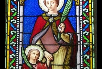 Es representada también con su cabeza en las manos, como los Santos Cefalóforos, aunque fuera revivida y finalmente muriera de otra cosa.