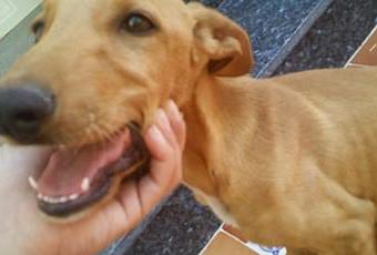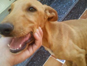 Estuvo a punto de atropellar a una cachorrita que estaba muy pero que muy delgada y llena de parásitos. Después de ponerle agua y comida se puso como loca de contenta.