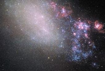 El telescopio espacial Hubble ha capturado una hermosa imagen de una galaxia que chocó con otra hace millones de años. Se trata de la galaxia irregular NGC 4485 que se encuentra a 30 millones de años luz de distancia y el choque se produjo con una galaxia más grande, la galaxia NGC 4490. El choque ha deformado poco a poco la galaxia. La gravedad de la segunda galaxia ha producido un desorden de las estrellas, el gas y el polvo, dando lugar a una región errática y dispersa de estrellas recién nacidas, calientes, azules y grupos caóticos y corrientes de polvo y gas en todas las direcciones. Estas estrellas nuevas se han producido por el tira y afloja gravitacional entre las dos galaxias, provocando zonas dispersas de formación de estrellas.