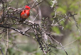 Unas imágenes de un macho inmaduro de churrinche (Pyrocephalus rubinus) que vimos a corta distancia en el Parque Nacional Lihué Calel la primavera pasada.