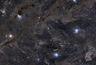 Esta imagen del cielo lleno de polvo que hay entre la constelación Taurus y el brazo de Orion de la Vía Láctea muestra las tenues y oscuras nebulosas de reflexión así como la fértil nube molecular de la región. El amplio campo de visión de seis grados comienza con la larga y oscura nebulosa LDN 1495 que desde la parte inferior izquierda se extiende más allá de lo que parece la cara de un pájaro (con la cabeza para abajo) de la nebulosa de la Pequeña Águila LBN 777, abajo a la derecha. Varias nebulosas de reflexión azuladas rodean las estrellas más tenues de Taurus que a menudo se omiten de las vistas en favor de espectáculos más populares de la constelación. En la parte superior izquierda está la nebulosa amarillenta VdB 27, asociada a la joven estrella variable RY Tau. La nube molecular Tauro, a tan sólo unos 400 años luz de distancia, es una de las regiones más cercanas de formación de estrellas de baja masa. A esta distancia, la imagen cubre unos 40 años luz.