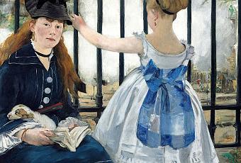 Cuando el pintor impresionista Manet quiso manifestar toda la ceremonia de la imagen, del color y de la fuerza del instante ante la visión de un escenario subyugante, pensó que nada lo haría mejor que impresionar tan sólo a los sujetos activos que miraran, frente al motivo reflejado inicialmente. Su obra El ferrocarril trataba de plasmar la entrada estremecedora de un tren en su estación. Pero, ahora, nada en su obra indica que sea una estación, una línea de ferrocarril o un tren siquiera lo que en ella se refleja. Sólo se ven dos modelos, una joven sentada que nos mira, y una niña de espaldas a nosotros. Ésta mira a través de una reja hacia lo que parece la estación. Una enorme nube de humo oculta gran parte de ese fondo. Fondo en donde no vemos casi nada que lo aclare. No hay otra cosa más que rejas, edificios y plantas. Pero, el autor lo quiere dejar claro ya con su título. Lo que pinta es un ferrocarril llegando a su término. Lo mira la niña entonces, ella es tan sólo quien nos ayuda a entenderlo. Incluso su hermana nos confunde; ella es tan sólo una modelo sosegada, lejos del feroz acontecimiento de su espalda.