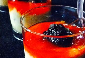 - Emplatado: disponer en vasitos la brandada llenando unos 2/3 de su volumen. Sobre la misma 2 cucharadas de mermelada de pimiento y culminando la cucharadita de olivada negra.