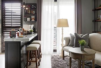Al estilo americano clásico…este apartamento de 54m2, crea con su decoración el ideal americano…solapar sala de estar&cocina… un único uso funcional, en tonalidades grises, con venecianas en madera y cerámica de hidráulicos en azules, marcando la distinción…junto con la barra de la cocina… directamente no es solo el uso de mesa, sino una especie de ambiente de cafetería relajado. La división de asignación en el resto de espacios, nos recuerda que si quieres aumentar el calor del hogar, puedes utilizar el color gris té en la zona de estar y los tonos marrones claros en el dormitorio, selecciona las paredes maestras….y la receta de “un clásico mini” la tendrás lista.