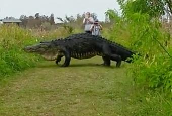 Un cocodrilo masivo, fácilmente tan largo como una minivan, fue capturado en video cruzando caminos con los entusiastas de la naturaleza en el centro de la Florida el domingo, en una escena que fue descrita como "muy emocionante" por un valiente testigo ocular.