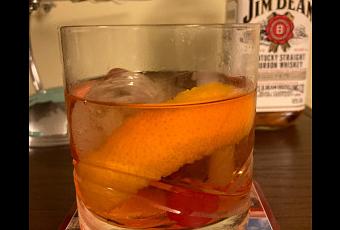Para elaborarlo, en primer lugar ponemos el azúcar en el vaso y le añadimos el amargo y el agua. El amargo más popular y que conocerás es el Amargo de Angostura. Si tenemos un muddler (mano de mortero) lo majamos todo bien hasta que este disuelto el azúcar, o si no, nos ayudamos con una cucharilla. Como alternativa podemos usar sirope simple (una parte de azúcar y una de agua) añadiendo una cuchara en vez del agua y el terrón, de tal forma que aseguramos que el azúcar este completamente disuelto. Una vez integrado añadimos dos piedras de hielo, grandes, de 5 cm mínimo. Añadimos el bourbon y terminamos con el twits de naranja y la cereza de marrasquino. Ojo no confundir con cerezas el almíbar, que no tiene que ver. Yo es cierto que en mi versión casera he cambiado alguna cosa. Lo primero a falta de Angostura u otra marca, utilice un licor de bitter que tenia en casa, en este caso Campari. No es lo mismo, lo se, ya que el Campari es un aperitivo amargo con alcohol (28.5º), y la Angostura (44.7º) es más bien un condimento, pero en mi caso me sirvió de sustituto para darle el toque de amargor que requiere. Para que os hagáis una idea, el Campari con azúcar recuerda mucho al famoso bitter Kas, que no deja de ser lo mismo, (salvando la gran distancia) pero sin alcohol. Tampoco tenia cerezas de marrasquino, con lo que utilice una cereza en almíbar. Tampoco es igual, pero bueno, para estar en casa cubre la papeleta. Como bourbon utilice Jim Bean.