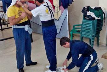En nuestro segundo ensayo como preparación a lo que para los sangristas representa ser el día más grande del año, ha discurrido con la normalidad prevista. Las dos cuadrillas se ponen a punto para que nada quede al azar y esté todo meticulosamente cuidado. Tanto es así que la foto es bien representativa de la sincronización que tiene la cuadrilla de nuestro Cristo tanto dentro (reconocida, valorada y llamada a crear época) como fuera (3 costaleros en un metro cuadrado se atavían unos a otros).