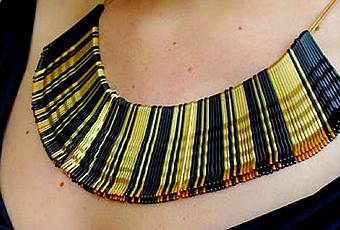Para hacer tu propio collar con horquillas no necesitas más que una cuerda, tanza o lo que se te ocurra para ir montándolo, y las horquillas del pelo del tamaño y el color que más te gusten. No es necesario que lo hagas tan grande como el de la primera foto, con menos horquillas también queda muy mono. Además puedes completar el conjunto con unos pendientes también hechos con horquillas. ¿Te gusta la idea?