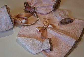 Es una blusita larga, casi un vestido, a juego con su braguita y capota.