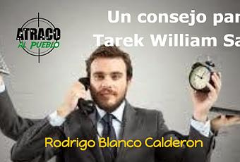 Asumir un cargo con semejante nombre se puede prestar a este tipo de confusiones. En todo caso, hubiera sido maravilloso ver a Tarek soltar su teléfono celular, salir de su oficina e impedir con su maciza presencia el ataque atroz y cobarde que sufrió el diputado de oposición Juan Requesens en las afueras de la sede de la Defensoría del Pueblo.Sin embargo, no fue así. Se sabe que en las situaciones críticas Tarek prefiere arrinconarse en Twitter. Las redes sociales son el gimnasio donde el Defensor del Pueblo entrena las veinticuatro horas del día, donde práctica la justicia que nunca sale a implantar en la calle. Una eterna calistenia moral que lo deja agotado frente al espejo de sus propias declaraciones. (nota de la redacción: el demócrata Tarek nos ha bloqueado en twitter, lamentamos que no sepa discernir quien es el mensajero de quien es el autor de las criticas que recibe, si lo supiera seria una prueba de inteligencia y de hombría, cosa esta ultima que salvo el cuerpo logrado a base de píldoras es difícil de evaluar.)