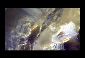 Se trata de una combinación de tres fotografías del cráter de impacto Korolev —ubicado en altas latitudes del hemisferio norte marciano— obtenidas desde 400 kilómetros de altitud el pasado 15 de abril.