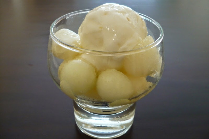 BOLITAS DE MELÓN CON HELADO DE LIMÓN
