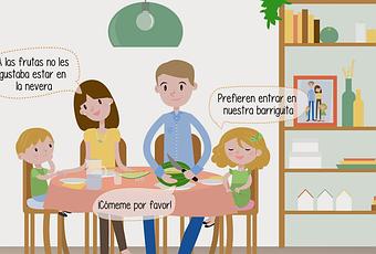 - Puede que no quiera la fruta sola... pero ¿y si la acompañamos de un rico yogur, o con nata o con helado? De forma ocasional, claro.- Y por supuesto, cuéntale alguno de los Cuentos Suculentos de la familia Pérez Gil y prepara alguna sencilla receta como ésta: