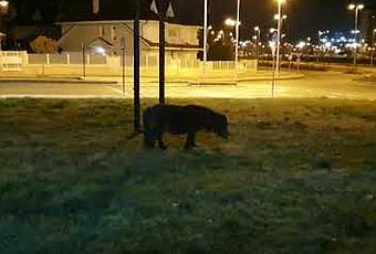 El animal, que presumiblemente se soltó y consiguió salir del cercado donde se encontraba, pastó tranquilamente en los jardines y se acercó a la puerta de Urgencias de la Clínica, donde notó presencia de humanos y parecía estar esperando comida o cariño.