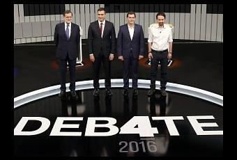 Las peores expectativas que temíamos se han cumplido. El único debate en el que iban a participar los líderes de las cuatro formaciones más importantes del espectro político español, de cara a los comicios del próximo 26 de junio, fue una oportunidad perdida, desaprovechada. Más que confrontar programas, debatir ideas e interpelarse argumentos, los aspirantes a presidir el gobierno de España se limitaron a pronunciar monólogos, reiterar consignas ya conocidas e intercambiarse reproches a diestro y siniestro. Si lo percibido en el debate de ayer representa el nivel de los candidatos y el tenor de sus actitudes, mal pronóstico cabe esperar del resultado de esta repetición de las elecciones generales: repetir el tactismo partidista e ignorar los intereses generales del país. Es decir, más de lo mismo entre cuatro minorías incapaces de entenderse, dialogar, confiar en la buena voluntad del adversario y alcanzar acuerdos que permitan la gobernabilidad de España. Vetos, soberbia, inmovilismo y descalificaciones son los mimbres con los que pretenden hacer política de Estado los representantes de la vieja y nueva “casta” que anoche exhibió, más que promesas e iniciativas, sus limitaciones y rémoras. Ninguno de ellos estuvo a la altura de las extraordinarias circunstancias por las que atraviesa el país, atrapado en una encrucijada de parálisis que le impide afrontar los problemas del presente (crisis, paro, pobreza, desigualdad, etc.) y encarar los desafíos del futuro (crecimiento, progreso, bienestar, pleno empleo, etc.). En definitiva, el debate de anoche no ha servido para nada, para nada nuevo que ilusione a la ciudadanía, les impulse a acudir a las urnas y poder discernir un proyecto de país de otro, sin tener que soportar banalidades, lugares comunes y generalizaciones propios de cualquier charlatán. Lástima.