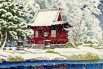 Nieve en la capilla de Benten Entrada, Inokashira, de Kawase AsuiEste Cobijo se va toma un respiro durante unos días, por lo que os deseo a todos unas felices fiestas y una magnífica entrada en el 2014.