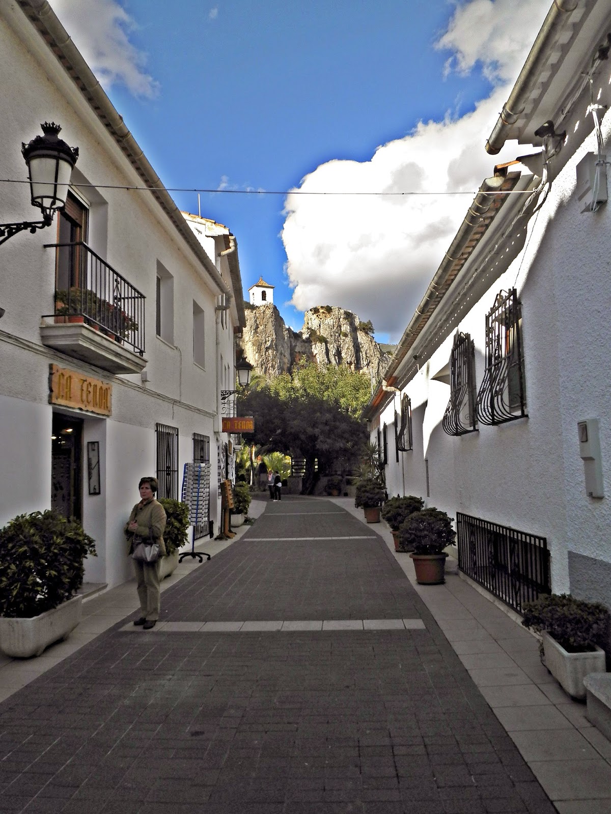 Como podéis ver en las fotos son todo callejuelas donde el suelo es de piedra, las casitas (que en su mayoría son comercios) son de colores cálidos y blancos. Es muy agradable pasear por sus callejuelas…se respira una paz y una tranquilidad. En el pueblo en sí no circulan los coches, solamente se puede acceder a él a pie. Es una ventaja porque puedes pasear tranquilamente sin pensar en subir a la acera cada vez que escuchas el sonido de un motor, y además si vas con niños puedes estar tranquila aunque vayan por medio de la calle. Los coches de quedan en la carretera que rodea el pueblo junto con los autobuses donde viajan los turistas.