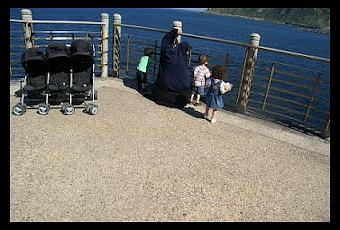 Hemos llegado por la mañana y habíamos quedado lo primero con Padresdetrillizas en el paseo de la playa. Claro si un trio de trillizos llama la atención de la gente dos mucho más. Parecíamos la atracción de la feria y se paraban sobre todo las señoras mayores todo el tiempo a decirnos y preguntarnos. Madredetrillizas es una chica encantadora y simpática. Yo estaba nerviosilla porque soy tímida y no sabía como iba a ser el encuentro en persona a pesar de haber hablado miles de veces por internet, y resultó como si me hubiera encontrado con una prima o algo así. Me habría gustado habernos pasado la tarde sin niños ni maridos de parloteo tomando un café con galletas, pero bueno todo no se puede tener, jejeje.