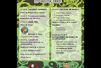La jornada comienza a las 12:00 h con Talleres Juveniles en la plaza del Palacio de la Cultura. Ya por la tarde, a partir de las 16:30 h, la Banda Municipal de Música llevará la fiesta y su música por las calles de Herrera con el Pasacalles. A las 17:30 h tendrá lugar en la Plaza de Toros el Gran Prix, al cual habrá que inscribirse previamente en el Espacio para la Creación Joven de Herrera, abonando 6€. Esta actividad es sólo para mayores de 18 años. Más tarde, a las 19:30 h, Oscar Romero impartirá un Taller de Producción Musical en el auditorio del Palacio de la Cultura.