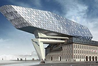 Según los diseñadores “un nuevo volumen cristalino levantado por encima del edificio conservado. Juntos forman un nuevo e impresionante hito de la sede de la Autoridad del Puerto de Amberes”