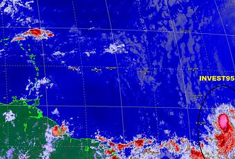Esta onda tropical ha sido designada como la INVEST95L en el Atlántico Oriental cerca de los 8°N con 33°W, a unas 800 millas al Suroeste de las islas de Cabo Verde. Las imágenes de satélite muestran un área modesta de las fuertes tormentas que se está mostrando alrededor del disturbio. La cizalladura del viento (uno de los enemigos para la formación de éstos sistemas) es moderada, de 10 – 20 nudos, y las temperaturas oceánicas son cálidas, 28°C. Sin embargo los modelos sugieren que INVEST95L encontraría aguas más frías de 27.5°C durante el fin de semana mientras sigue su trayectoria al Oeste o hacia el Oeste-Noroeste a una velocidad entre 15 – 20 mph. Así mismo se espera que la cizalladura del viento se mantenga moderada hasta el día lunes, lo que puede permitir alguna organización adicional. Sin embargo, INVEST95L está incrustado en un área muy grande de aire seco asociado con la capa de aire del Sahara (SAL), y de acuerdo a las estadísticas, las ondas africanas en el mes de julio típicamente tienen considerables problemas para organizarse en éste entorno seco. El disturbio tropical, dependiente de su evolución o no a ciclón tropical, podría llegar a las islas de las Antillas Menores a partir del martes.