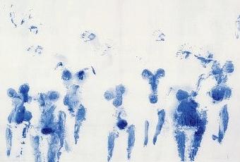que en un traducción libre sería algo así como sudario del mundo perro. Klein nació en Niza y estudió en Japón, de donde trae influencias Zen y búsqueda del vacío. Vaciar de mano del artista sus cuadros le llevó a pintar con rodillo sus monocromos. Y al rechazo inicial en las galerías que se llamaba a sí mismas “de novedades”. Y luego usó pinceles vivos o pinceles humanos.