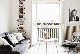 Uno de los detalles que más me han llamado la atención de este dúplex sueco es el suelo de madera del salón y la cocina pintados de gris en contraste con las paredes blancas, combinación contraria a la de la habitación infantil, suelo de madera pintado de blanco y paredes grises. Lo cierto es que el suelo gris unifica el espacio al ser un tono neutral no quita en ningún momento el protagonismo al mobiliario y la decoración. Buen espacio de almacenaje en todo el piso, con estanterías en el salón para libros, armarios y despensa en la cocina y en la habitación infantil cómodas y armario de obra.